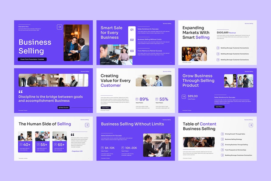 使用这款商务销售 PowerPoint 演示模板,达成更多交易,给客户留下深刻印象。该模板专为销售团队、企业家、商业顾问和企业专业人士设计,提供您所需的一切,助您以专业且极具说服力的方式展示销售策略、产品、定价模式、竞争分析和增长机会。模板包含可完全编辑的幻灯片,涵盖销售漏斗、价格表、客户旅程图、产品展示、SWOT 分析、KPI 仪表盘和收入增长图表。其现代、简洁且专业的设计,确保您的销售演示清晰自信地传递价值。