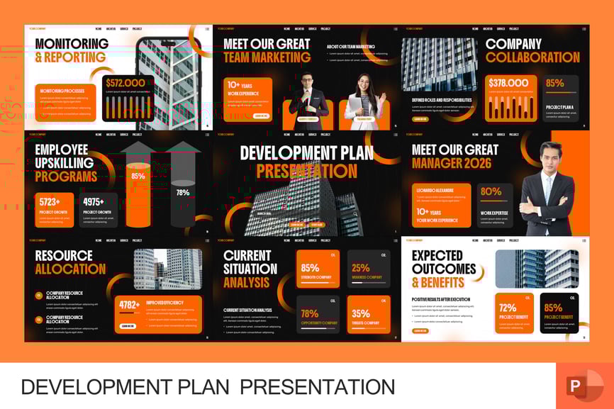 发展计划 PowerPoint 模板 – 商业战略与路线图幻灯片