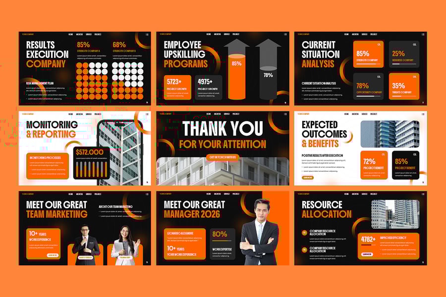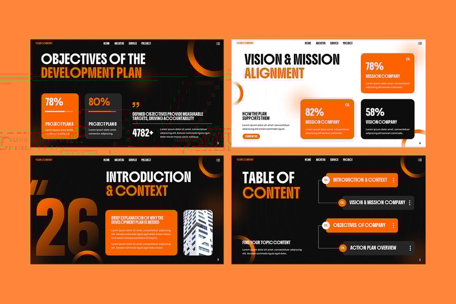 发展计划 PowerPoint 演示模板是一款现代专业的幻灯片模板,旨在帮助您有效地展示业务战略、增长计划和项目开发情况。该模板拥有完全可编辑的布局、简洁的设计和引人入胜的视觉效果。它包含多种幻灯片类型,例如时间轴信息图、战略规划图表、SWOT 分析、路线图和 KPI 仪表盘。其极简的设计确保您的内容脱颖而出,同时保持专业和正式的形象。