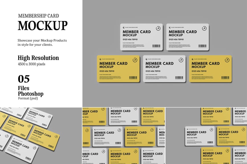 用这款 PSD 文件炫酷地展示您的会员卡设计!只需几秒钟,即可为您的客户创建逼真的会员卡模型。此 PSD 文件采用智能对象功能,方便您轻松快捷地更改模型内容。操作非常简单!只需双击智能对象,粘贴您的设计稿,保存即可。