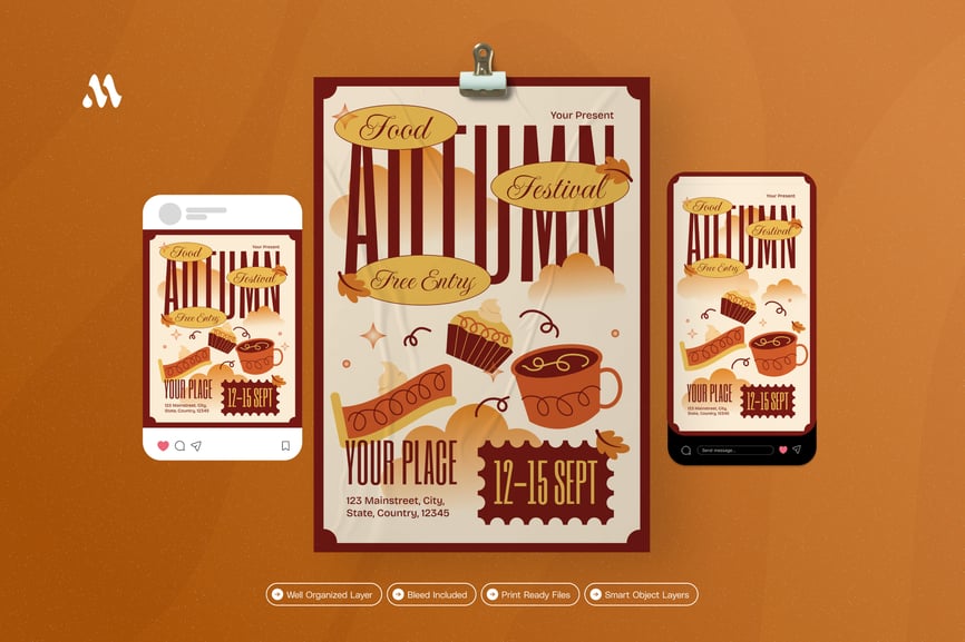 我们的“秋季美食节”传单套装带来惊艳的视觉冲击。我们精心设计,可根据您的品牌或业务进行个性化定制。无论您展示哪个行业、服务或产品,我们都能为您提供理想的传单套装。