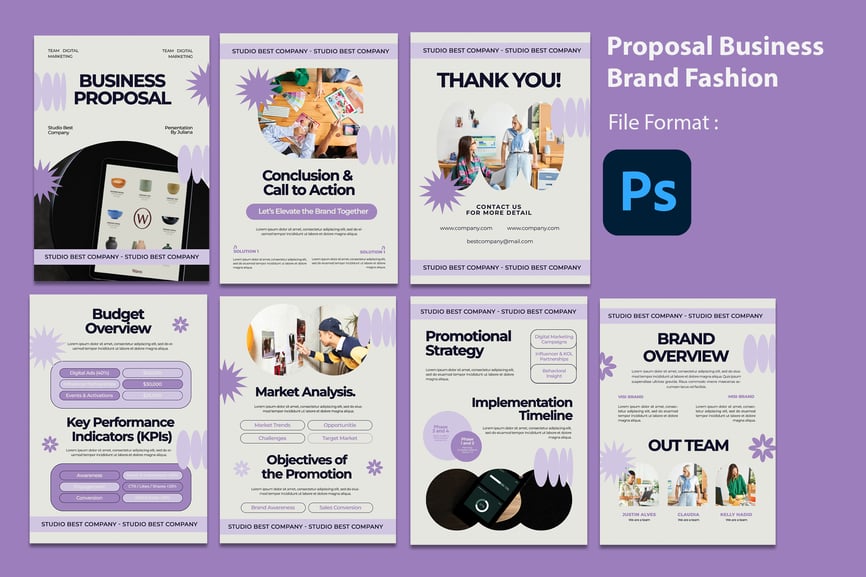 使用这款时尚现代的提案模板,自信地展示您的时尚品牌理念。该模板采用创意十足又不失专业的布局设计,完美呈现您的营销计划、推广策略、市场分析和品牌形象,带来赏心悦目的视觉体验。简洁的字体和潮流的设计元素,完美诠释了时尚行业的优雅与创新。
