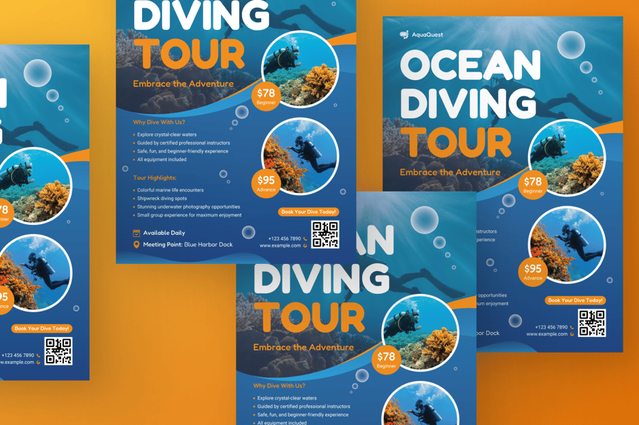 这套简洁、引人入胜的宣传单专为海洋旅游和潜水体验打造,助您开启精彩的冒险之旅。它非常适合旅行社、旅行社和度假村推广潜水套餐、水下探险或海滩活动。它采用平静清新的色调,以视觉方式展现海洋之美,是生态旅游、夏季旅行和探险营销的理想之选。