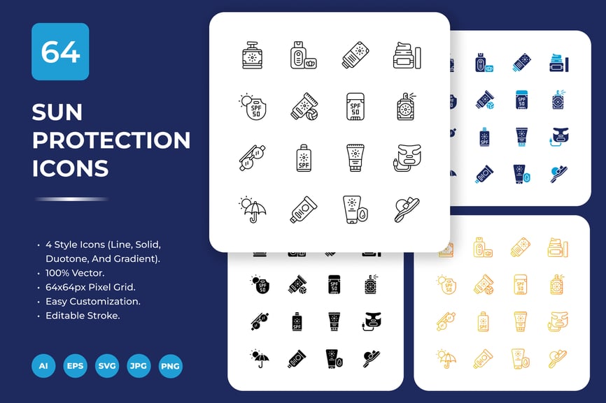 **防晒图标 – 64 个图标包**