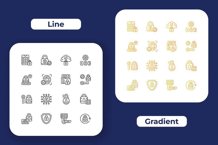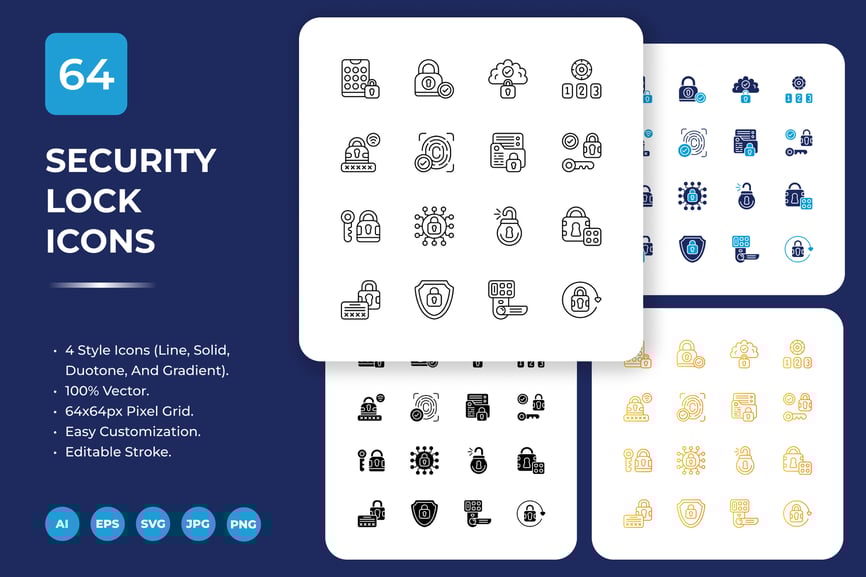 一个现代且功能多样的图标包,专为网站、移动应用、书籍、社交媒体、信息图表、传单、印刷品、横幅、海报等设计。包含 64 个图标,涵盖 4 种风格:**线条、实心、双色调和渐变**。