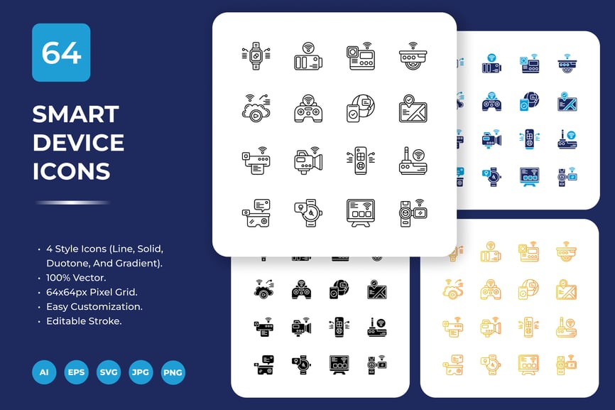 **智能设备图标 – 64 个图标包**