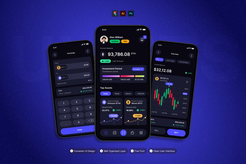 Crypto UI 套件的设计重点在于易用性和一致性,让您轻松创建美观实用的移动应用程序。每个元素都经过精心构建,完全可定制,并可随时适应您的品牌。无论您是设计社交应用、电商应用还是效率工具,此套件都能让您灵活地将创意变为现实。