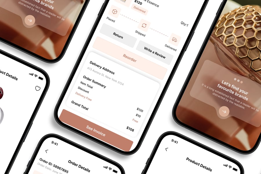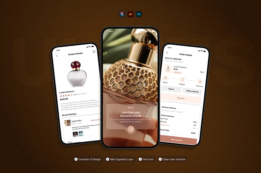隆重推出 **香水商店** 移动应用 UI 套件,这是一款现代化且功能全面的解决方案,可助您轻松创建简洁易用的应用界面。对于希望加快设计流程的设计师和开发者而言,这款 UI 套件堪称完美之选,它将您所需的所有基本组件整合在一个井然有序的软件包中。