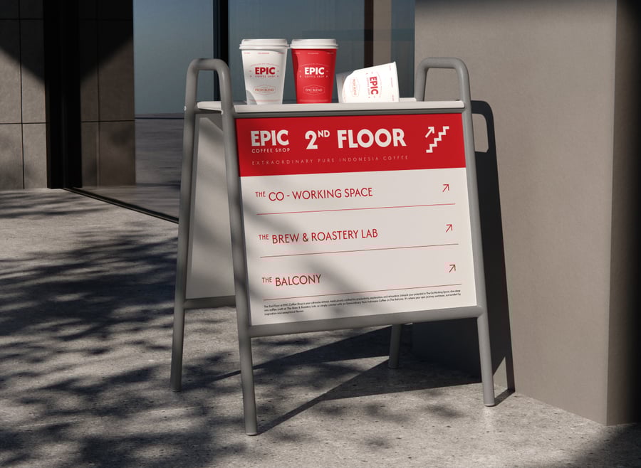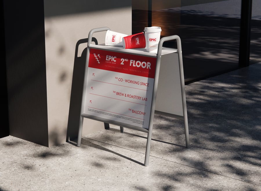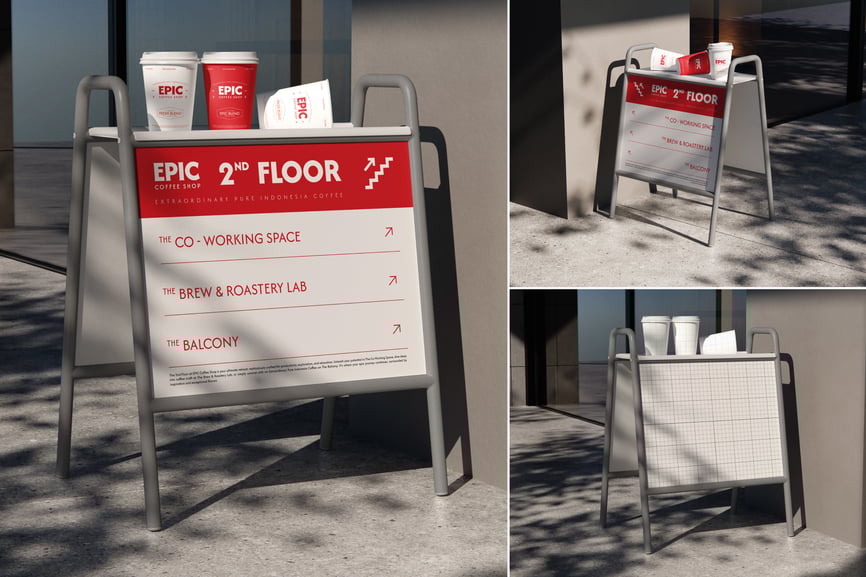 这款可编辑的店铺标牌模型能让您的品牌脱颖而出,非常适合用于立式标牌、咖啡馆促销和零售品牌推广。它能呈现高质量的视觉效果,吸引真实世界的目光。