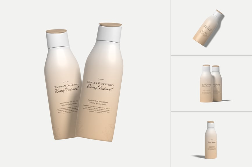 这款化妆品瓶样机采用分层 PSD 文件格式,可清晰、逼真、专业地展示您的设计。样机文件使用智能对象功能,让您只需几秒即可修改设计(内附 PDF 使用说明)。