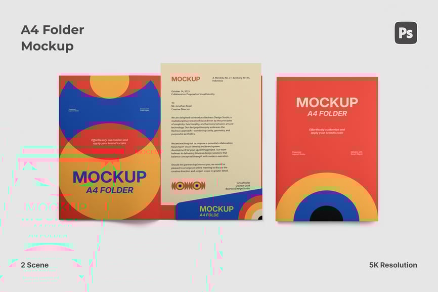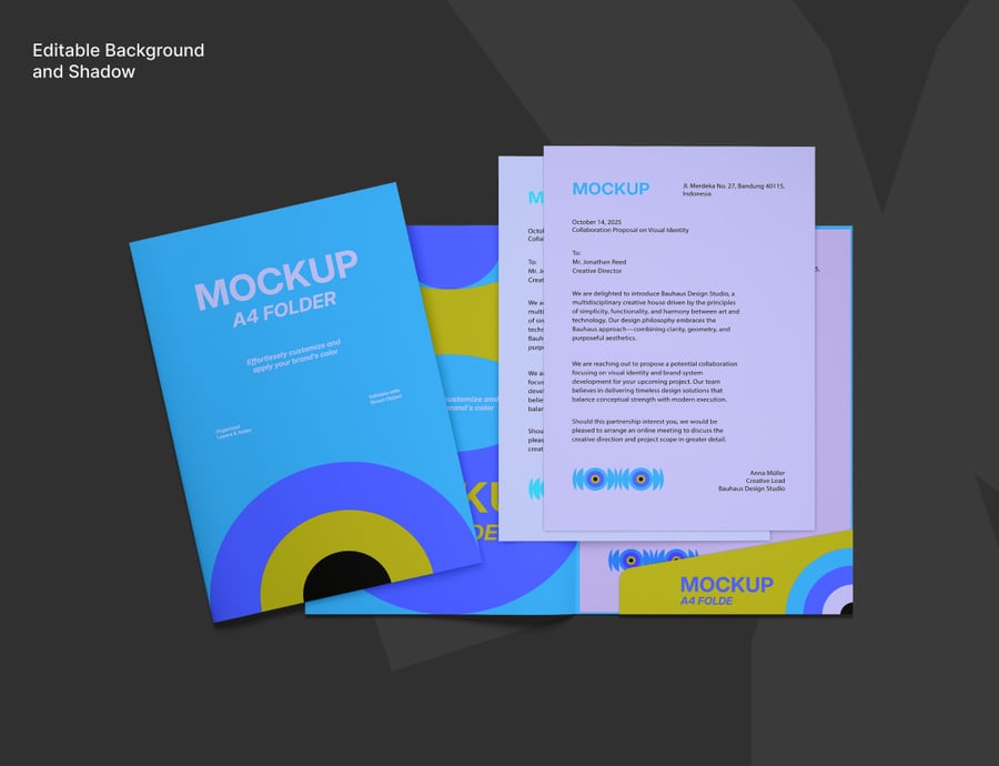 这款逼真的 A4 文件夹模型可完美展示您的品牌形象,是展示企业信笺、客户提案或办公文件文件夹的理想之选,呈现专业高品质的视觉效果。尤其适合平面设计师、企业品牌展示和作品集展示。