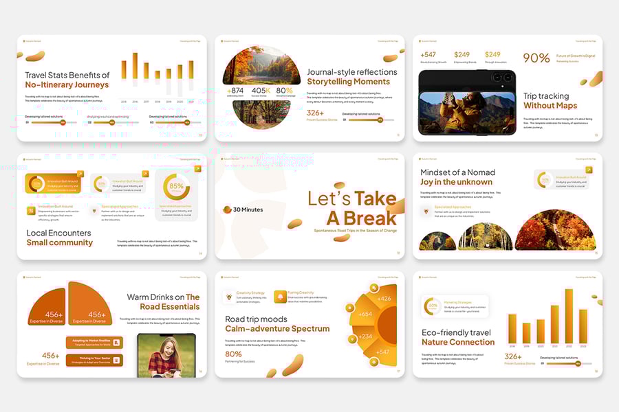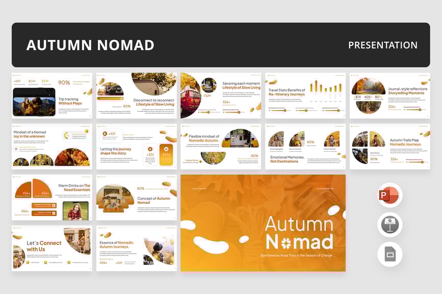 使用秋季主题演示模板,让您的下一次演示充满活力、自然流畅、令人难忘——该模板旨在通过展现成长和丰收的视觉故事来吸引和打动您的观众。