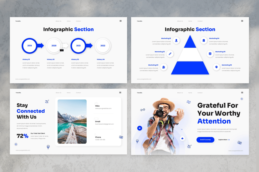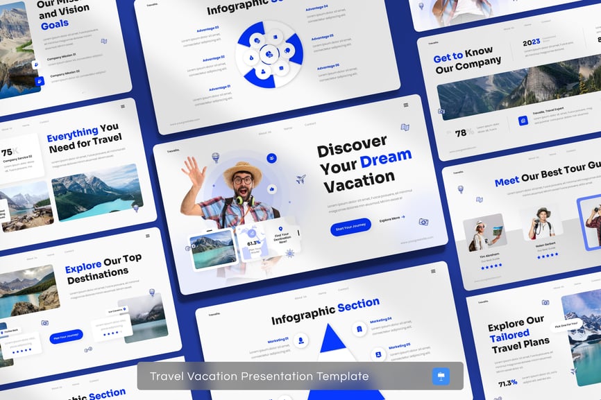 使用这款专业设计的模板,轻松打造极具影响力的“旅行度假演示文稿”。
