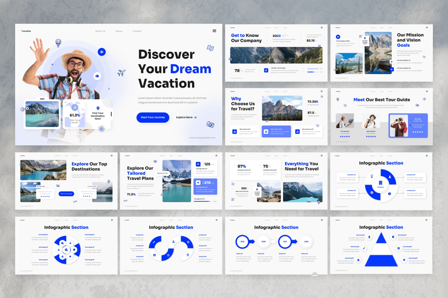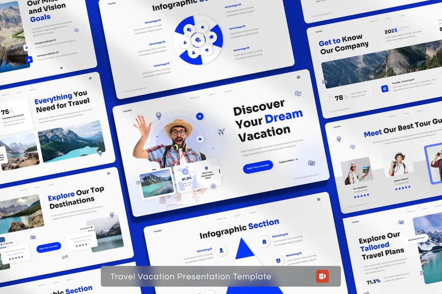 使用这款专业设计的模板,轻松打造极具影响力的“旅行度假演示文稿”。