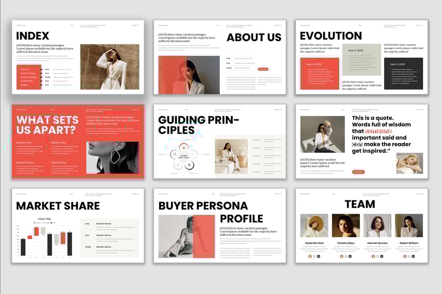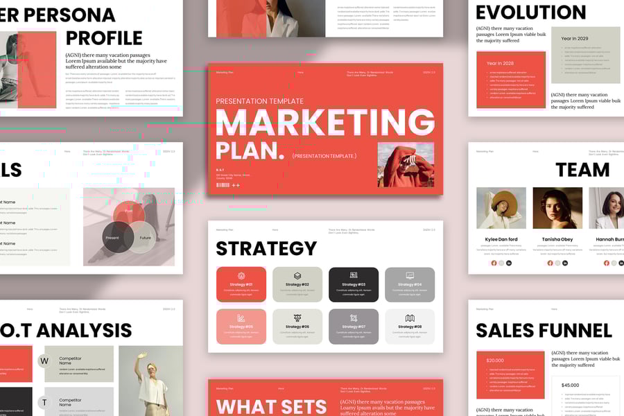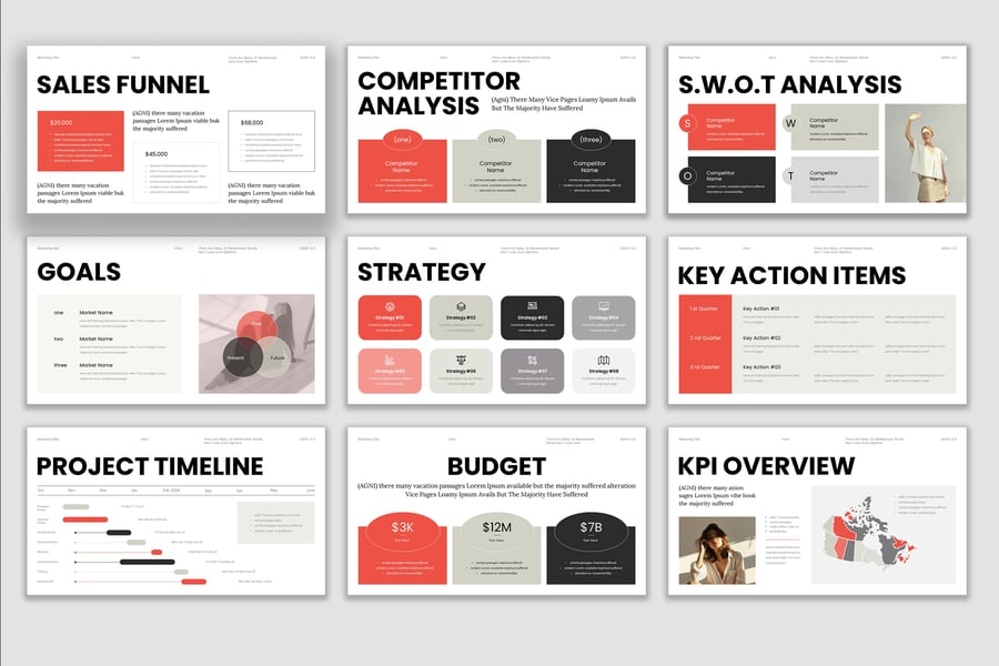 使用营销计划演示模板,以专业、简洁的方式展示您的作品。这款模板设计简约现代,功能强大,包含创意图片布局、信息图表、表格、矢量图标、示意图以及众多实用功能,助您将作品和公司形象提升至全新高度。