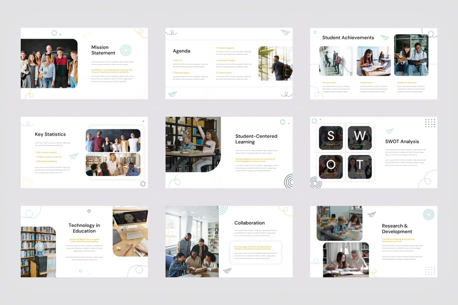 这款教育演示模板旨在为学术机构和教育机构提供专业、引人入胜且视觉风格统一的幻灯片。它包含使命宣言、议程、目标和关键统计数据等版块,是学校、大学和在线学习平台的理想之选。每张幻灯片都经过精心设计,采用简洁的字体、现代化的布局和直观的视觉层次结构,确保清晰易懂,引人入胜。教师、教育工作者和教育创业公司可以使用此模板有效地展示学习项目、学生成就或机构发展情况。该模板还包含 SWOT 分析、时间轴和联系信息幻灯片,帮助演示者自信地传达战略和进展。模板可在 PowerPoint 中完全编辑,用户可以轻松自定义颜色、字体和图像,以匹配其品牌形象。这款模板非常适合用于课程报告、学术提案或教育会议,在每张幻灯片中都兼顾了专业性和创造性。