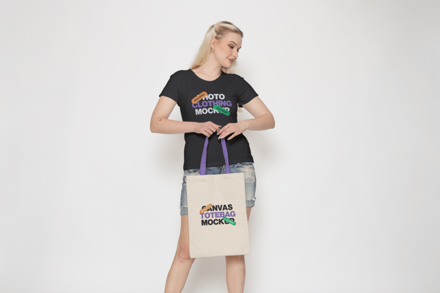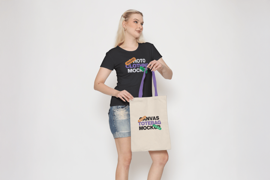 这款**手提袋和T恤样机**能以无与伦比的优雅姿态展示您的设计。凭借精准的细节和高分辨率,您作品的每一个像素都将完美呈现,展现专业水准和惊艳的视觉效果。是希望以高端质感展示作品集的理想之选。