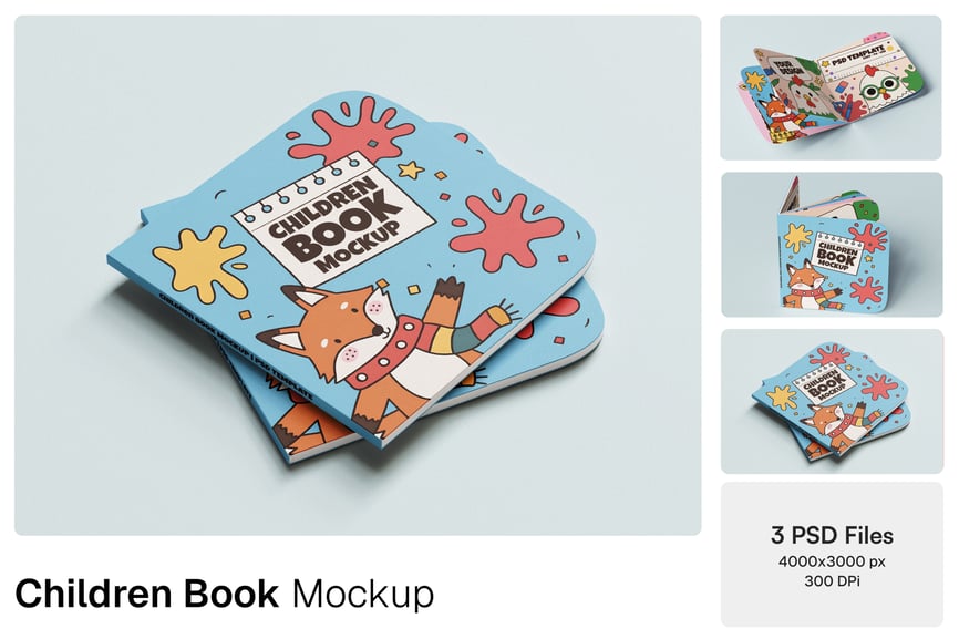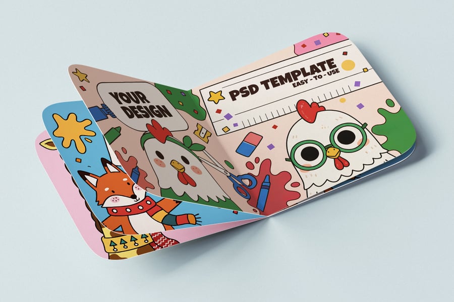 这款儿童书籍样机是一款明亮欢快的 Photoshop 模板,旨在以专业品质和趣味性呈现您的儿童书籍设计、故事插图或教育材料。该样机包含 3 个高分辨率 PSD 文件(4000×3000 像素,300 DPI),采用柔和的光照、逼真的阴影和圆角书角,完美契合儿童主题。