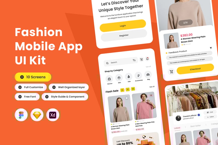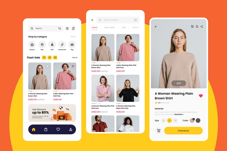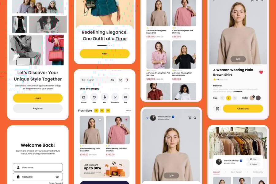 Floe 为时尚应用设计注入活力与创意。其鲜艳的色彩和动感的布局使其成为展示时尚系列和吸引用户的理想之选。Floe 的设计注重效率,专注于快速导航和赏心悦目的结账流程。无论您是自由职业者还是创意机构,这款设计都能助您打造精致专业的移动时尚体验。