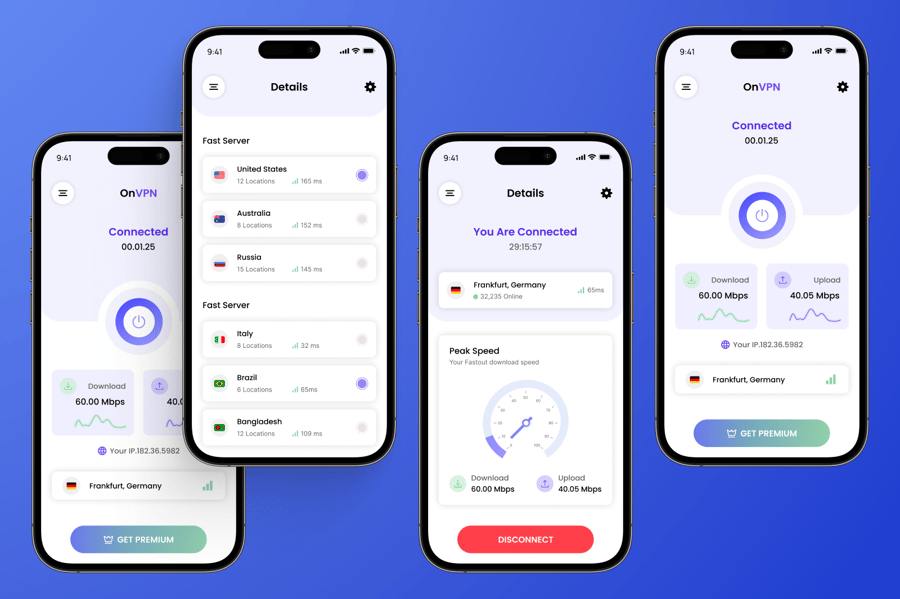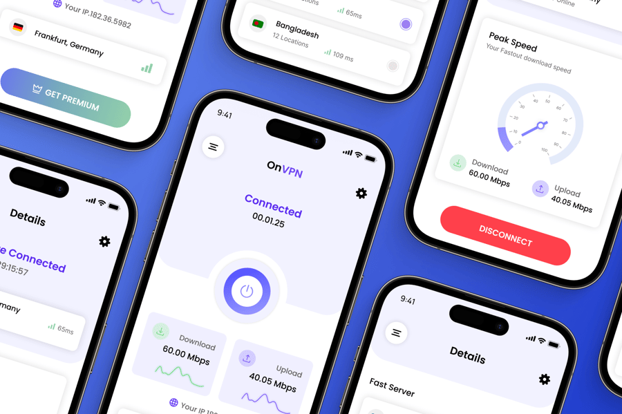 网络速度分析器和 VPN – 移动应用 UI 套件