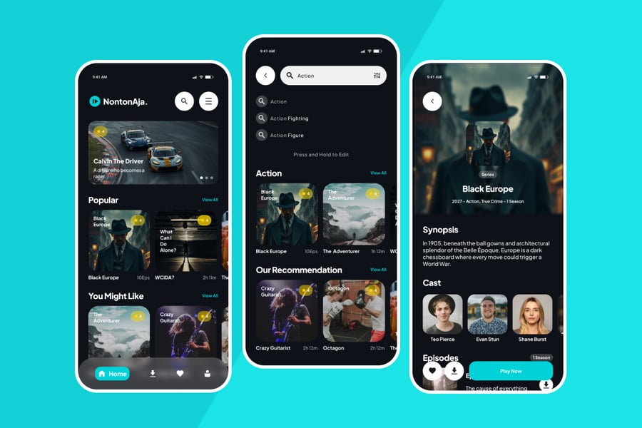 NontonAja 以简洁的深色模式和直观的导航,为移动流媒体带来现代影院般的体验。它专为电影制作人、工作室和设计师打造,将电影发现转化为一种优质、情感驱动的体验,并通过优雅而实用的设计牢牢吸引观众。