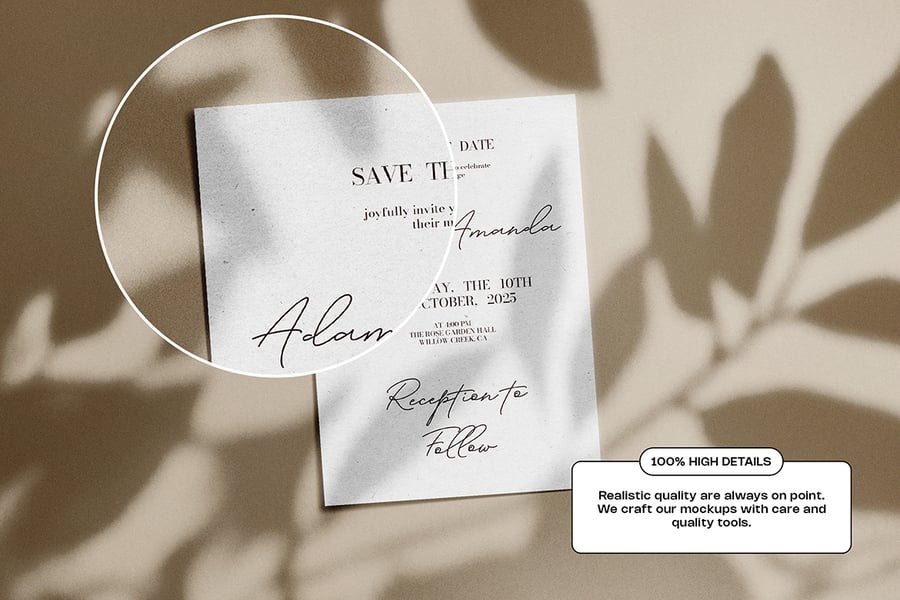 这款精致的A4婚礼纸张样机,风格优雅,适用于精美的邀请函设计、菜单卡或正式活动文具。柔和的自然光线、微妙的阴影和细腻的纸张纹理,营造出简约而优雅的氛围。它完美展现了书法、字母组合或简约的婚礼品牌标识,尽显永恒的精致格调。整体构图兼具奢华与宁静,是婚礼设计师、邀请函工作室和文具品牌展示作品的理想之选,能够完美呈现作品的真实效果。