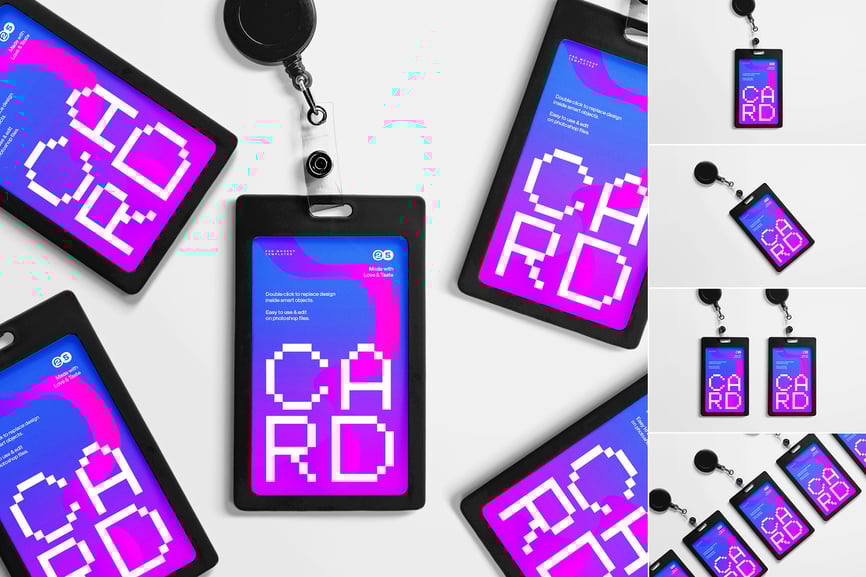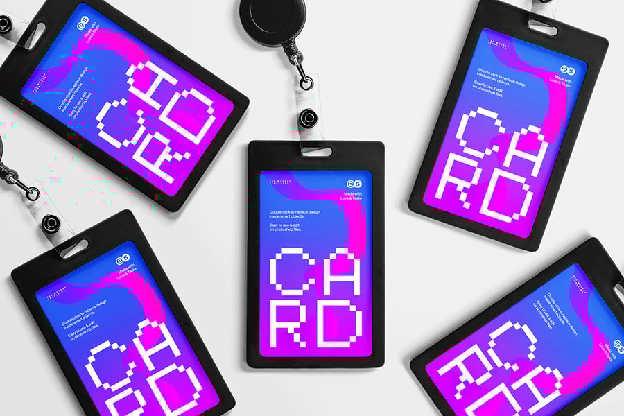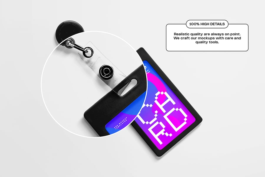 一款专业的身份证模型,采用柔和的光线和逼真的阴影,非常适合以简洁现代的布局展示员工徽章、公司品牌或活动通行证。