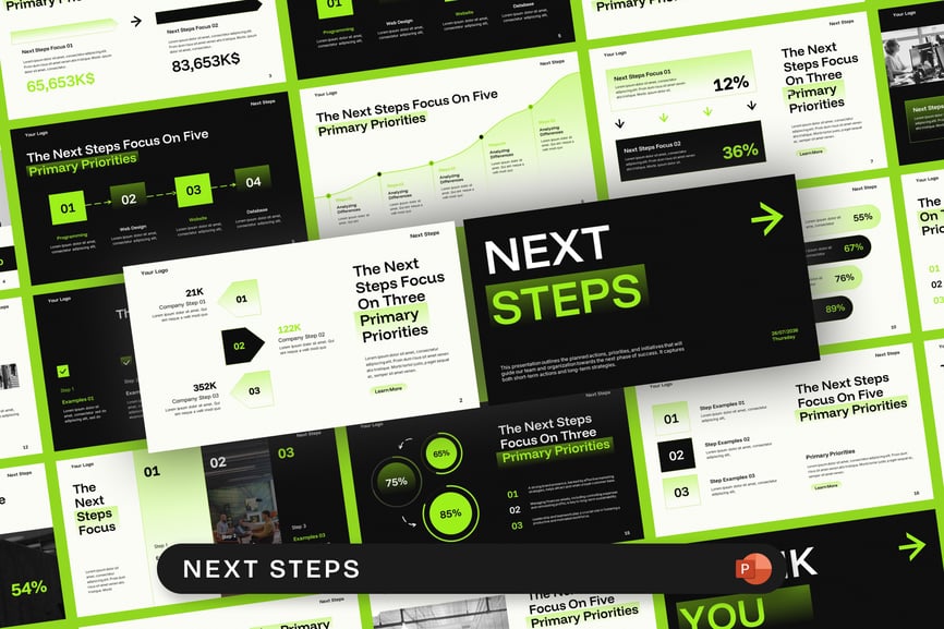 此模板包含完全可编辑的幻灯片,专为概述未来战略、项目里程碑、工作流程阶段、客户导入、实施步骤、路线图规划和决策跟进而设计。模板采用简洁的布局、信息图表、表格、图表和图标,确保您的后续步骤清晰专业地传达。此模板非常适合用于商业提案、战略会议、客户演示、进度报告、研讨会、培训课程、规划演示文稿和绩效评估,可帮助您将想法转化为可执行的计划。