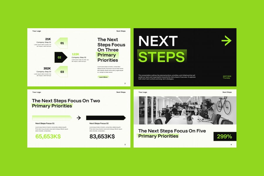 用清晰、结构化、风格化的方式呈现未来行动——所有这一切都可以在一个专业模板中完成。