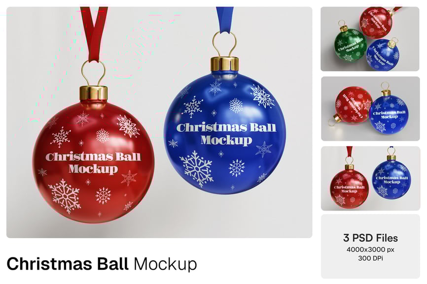 圣诞球样机是一款高级 Photoshop 模板,旨在以逼真优雅的方式展示您的节日装饰品、徽标或节日艺术作品。此素材包包含 3 个高分辨率 PSD 文件(4000×3000 像素,300 DPI),带有智能对象图层,方便您快速轻松地进行自定义。