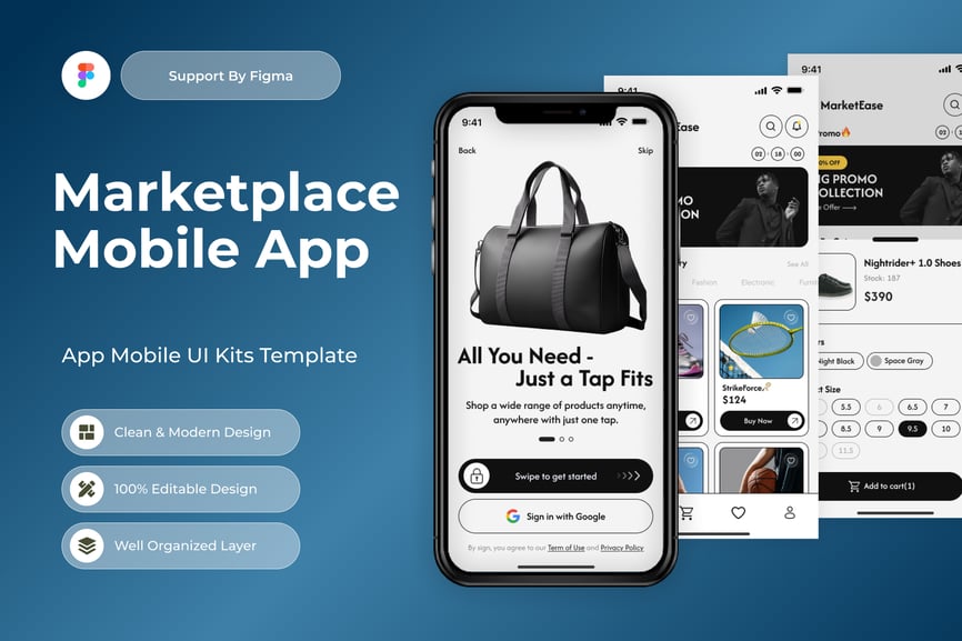 使用这款专业设计的模板,轻松打造极具影响力的应用市场移动应用。