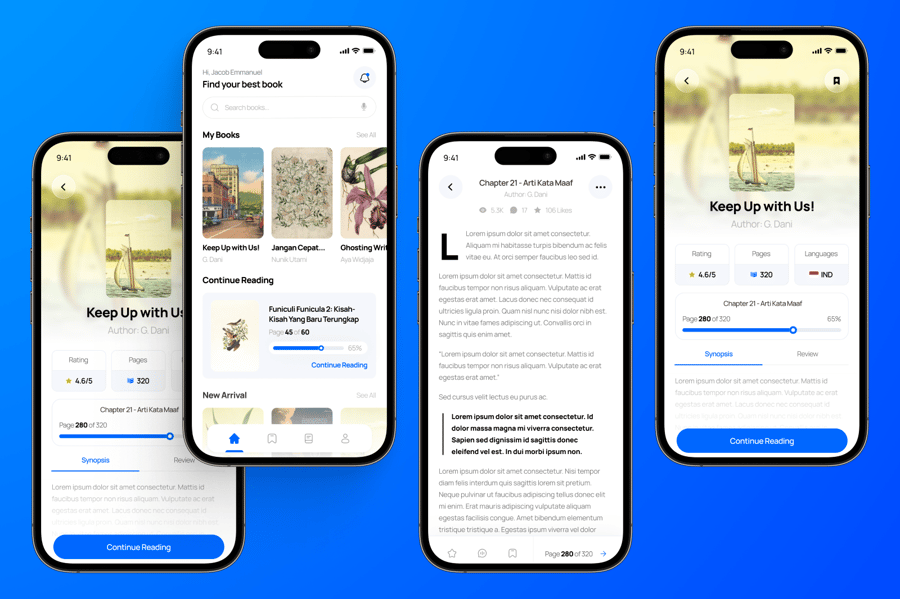 在线图书馆和电子书阅读器移动应用 UI 套件