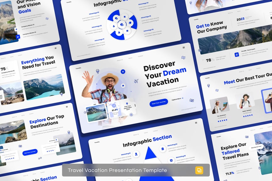 使用这款专业设计的模板,轻松打造极具影响力的“旅行度假演示文稿”。