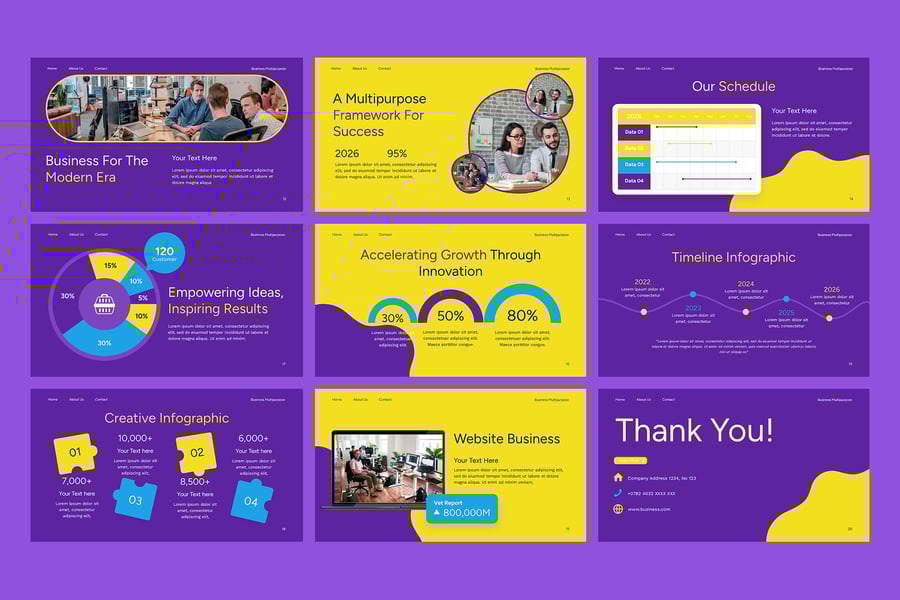 使用这款商务多用途 PowerPoint 演示模板,给投资者留下深刻印象,并清晰传达您的愿景。这款商务多用途演示模板是一款功能齐全、设计现代的幻灯片,旨在满足各种企业、创意和专业需求。无论您是准备公司简介、项目提案、营销计划、年度报告还是投资者路演,此模板都提供灵活的布局,满足您的各种需求。