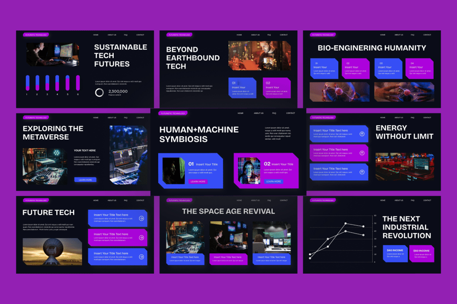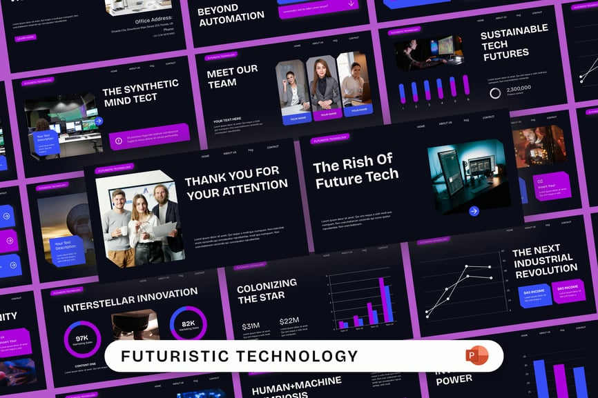 使用这款未来科技 PowerPoint 演示模板,开启创新之旅。该模板专为科技初创公司、IT 公司、数字化转型项目、人工智能、机器人和先进技术企业而设计,融合了简洁时尚的设计和未来感十足的视觉效果,让您的演示脱颖而出。它采用现代布局、霓虹灯元素和前沿信息图表,是展示技术解决方案、产品发布、数字服务、网络安全、区块链或人工智能驱动的创新成果的理想之选。