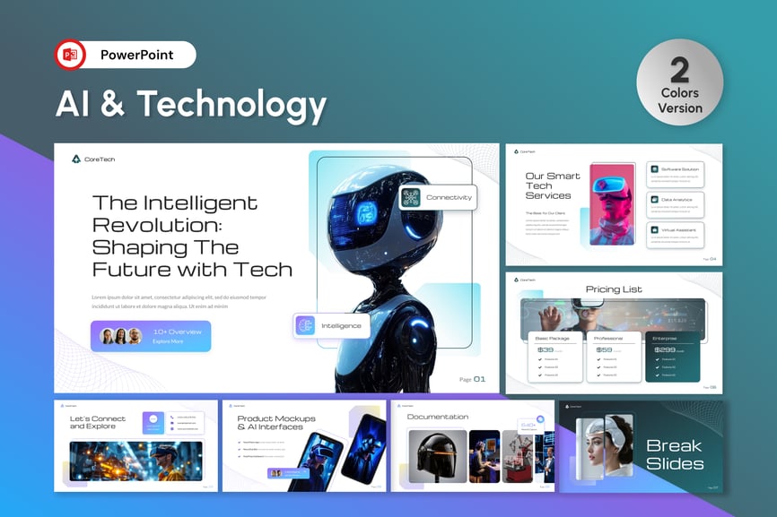 使用这款人工智能与科技演示模板,展现您的创新理念。它采用未来科技风格,布局简洁流畅,视觉效果充满数字感,旨在帮助您清晰地呈现复杂的概念。这款模板非常适合科技企业营销、创意机构以及寻求前卫专业外观的提案演示。