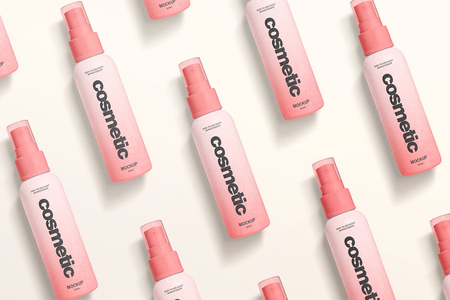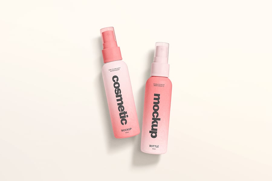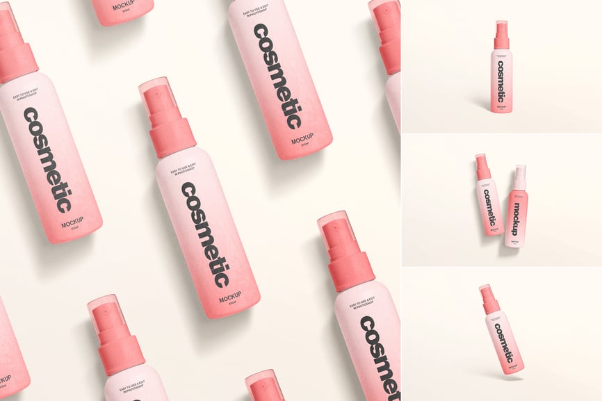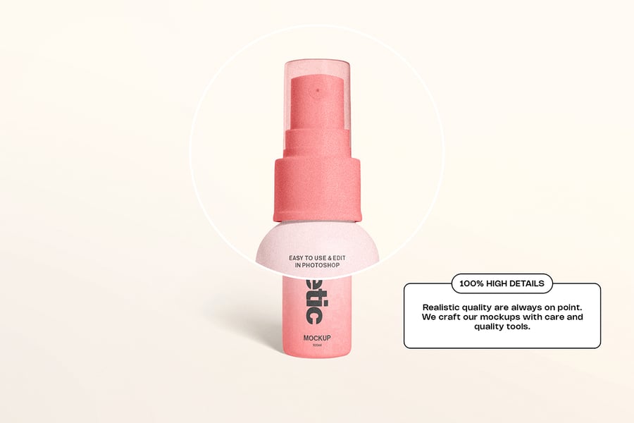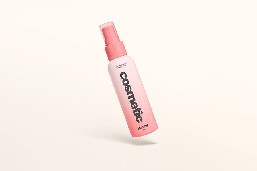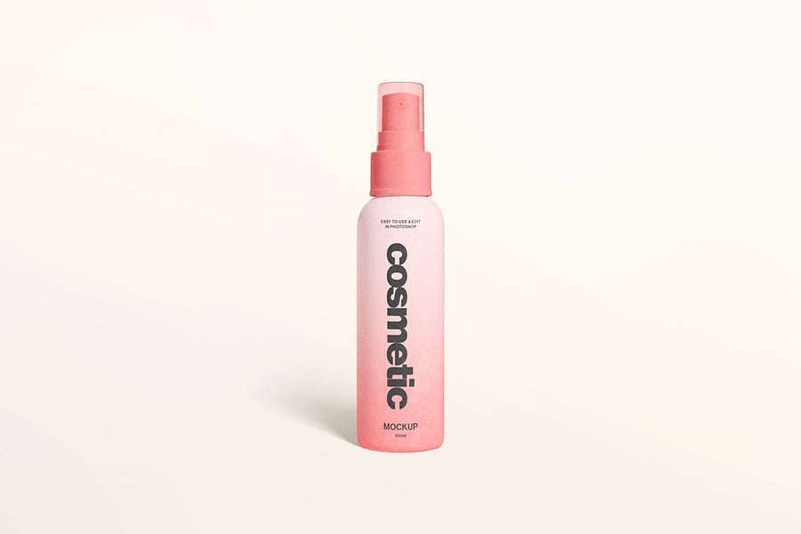 一款干净逼真的化妆品喷雾瓶模型,采用柔和的灯光和极简的造型,非常适合展示护肤或美容品牌设计。