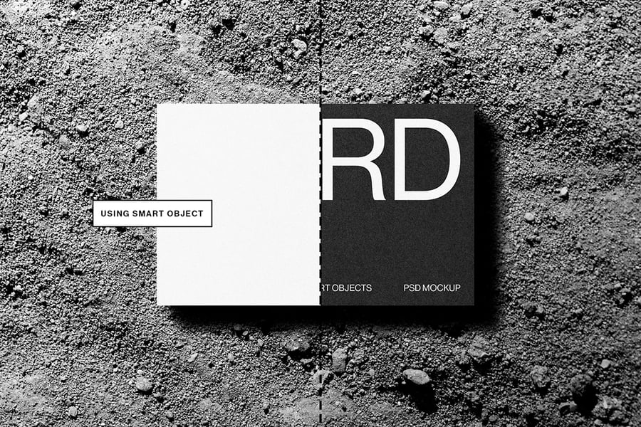 一款现代逼真的名片样机,展示在石质表面上。采用智能对象图层,方便自定义,呈现高质量效果。非常适合品牌推广、企业形象设计和专业文具设计展示。
