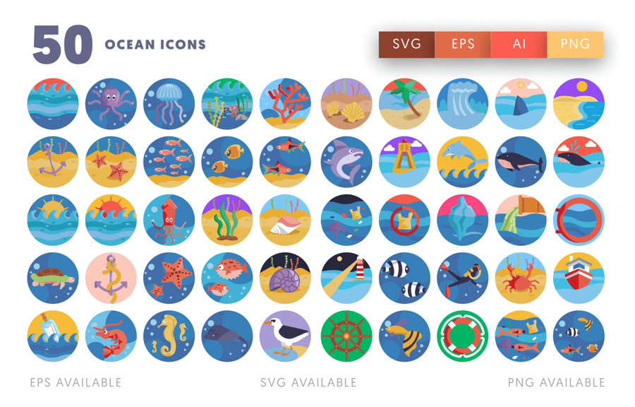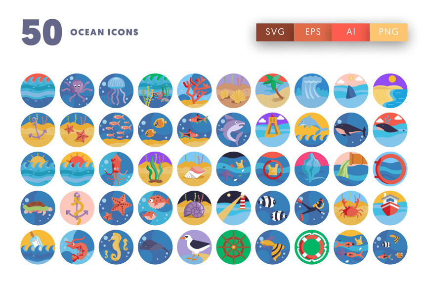 *50 个海洋图标套装包括:*