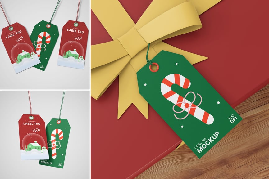 这款圣诞标签样机是一款充满节日气氛的高品质 Photoshop 模板,旨在以温馨喜庆的圣诞主题展示您的节日礼品标签、包装或品牌设计。此套装包含 3 个 PSD 文件(4000×3000 像素,300 DPI),图层组织清晰,并具备智能对象功能,方便您快速插入设计。