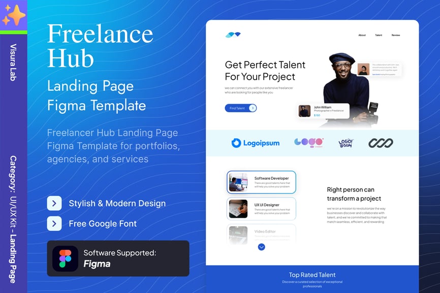 使用 Freelancer Hub 登陆页面 Figma 模板展示您的自由职业服务。该模板设计时尚专业,专为个人品牌打造、作品集制作和客户转化打造。模板包含有序的图层、响应式布局和即用型 Figma 组件,让您轻松快捷地进行自定义。无论您是独立专业人士、创意工作室还是数字代理机构,这款模板都能以现代、用户友好的设计帮助您打造强大的在线形象,并凸显您的技能和服务。