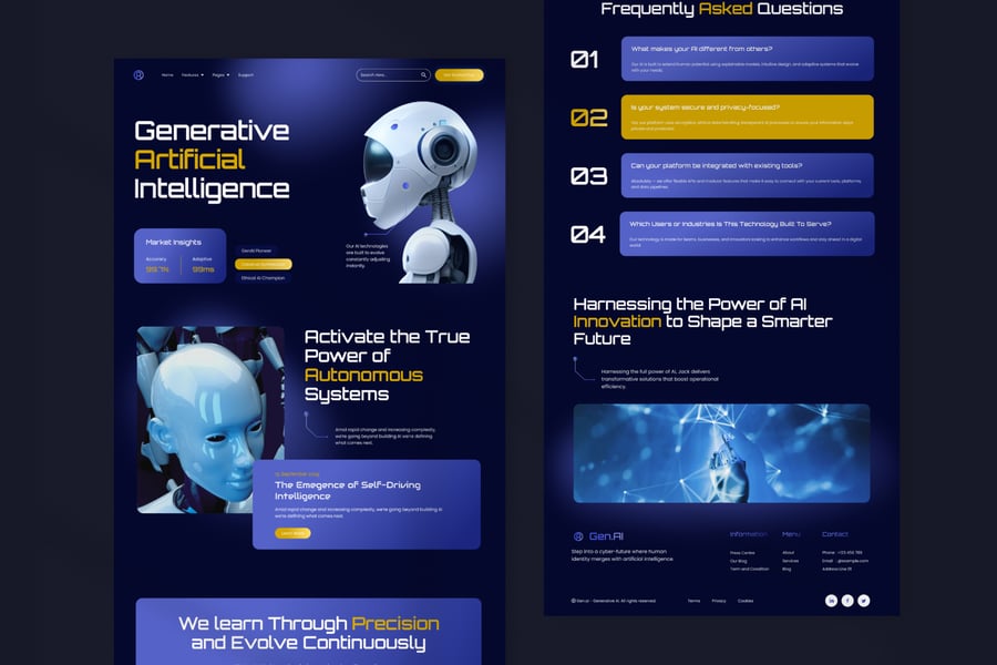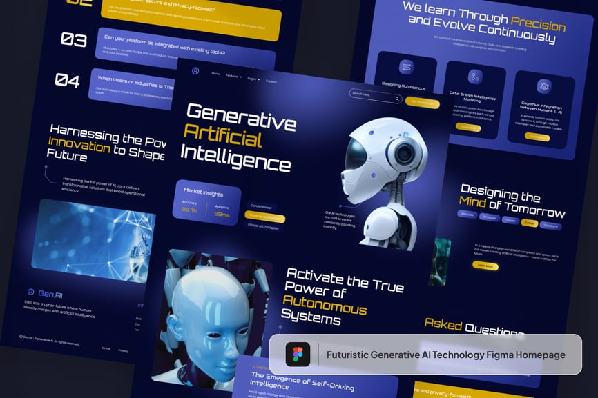 此模板完全基于 Figma 构建,支持自动布局、可复用组件和可自定义的变体,可轻松更新设计。您可以轻松修改排版、配色方案和内容,同时通过全局样式保持视觉一致性。非常适合 AI 产品发布、生成式 AI 应用以及希望在数字领域展现大胆、高端形象的科技品牌。