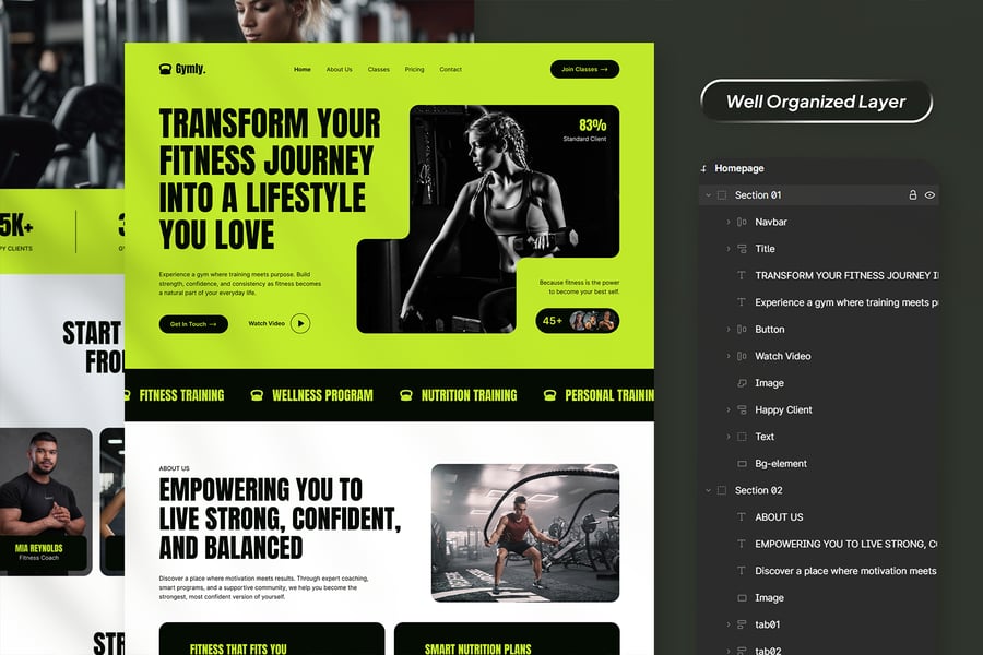 健身房和健身网站的登陆页面设计。该设计易于编辑、自定义和调整大小,条理清晰,充满爱意。