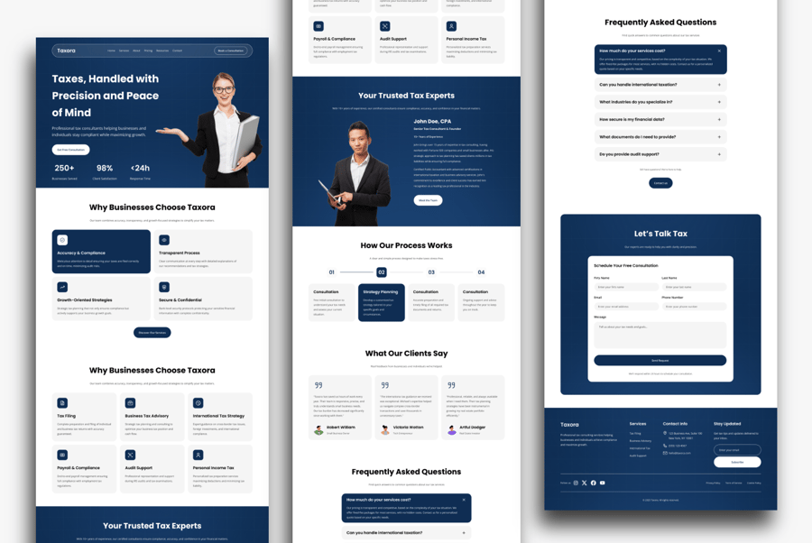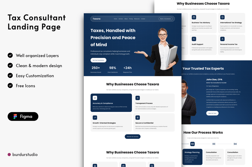 **此模板是一个简洁却专业且现代的网站。**您可以在 Figma 中编辑它。轻松插入内容、更改颜色,所有模板均已包含,可随时与您的受众分享。完全兼容、可编辑且像素完美。此外,它们组织有序,命名和分组都经过精心设计。