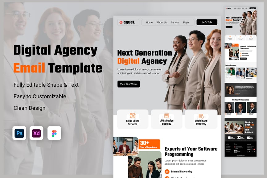 这是一个创意营销设计机构的电子邮件模板——立即获取!它是一款出色的电子邮件简报