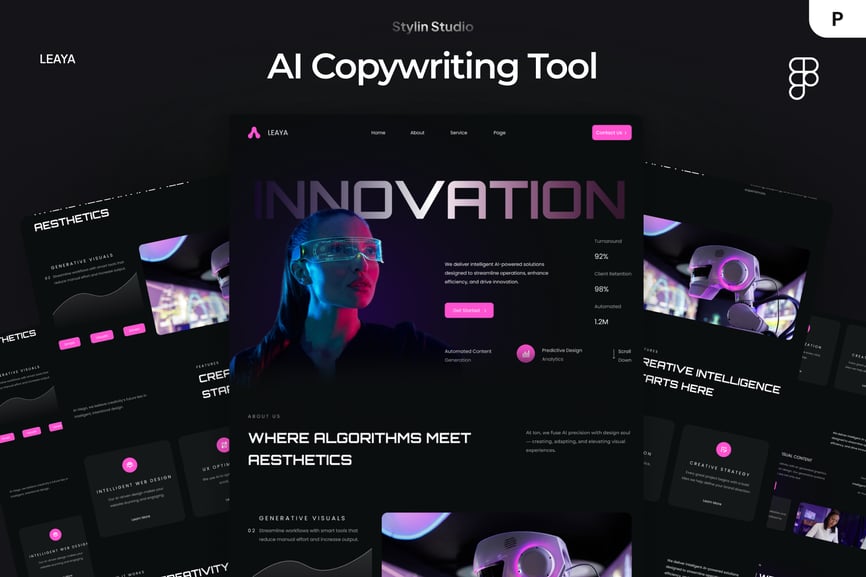 这款AI文案工具落地页模板专为AI文案平台、SaaS初创公司和营销自动化工具而设计。它采用简洁而富有未来感的UI/UX设计,有助于展示您产品的AI功能,提升注册量,并通过专业且技术驱动的体验吸引用户。