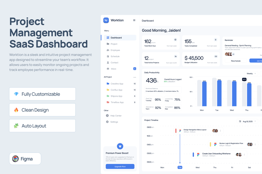 Worktion 是一款项目管理 SaaS 控制面板,拥有简洁、现代的设计风格和高质量的界面。Worktion 易于定制,可根据您的需求进行全面调整。它还提供浅色模式,并可在 Figma 中轻松使用。