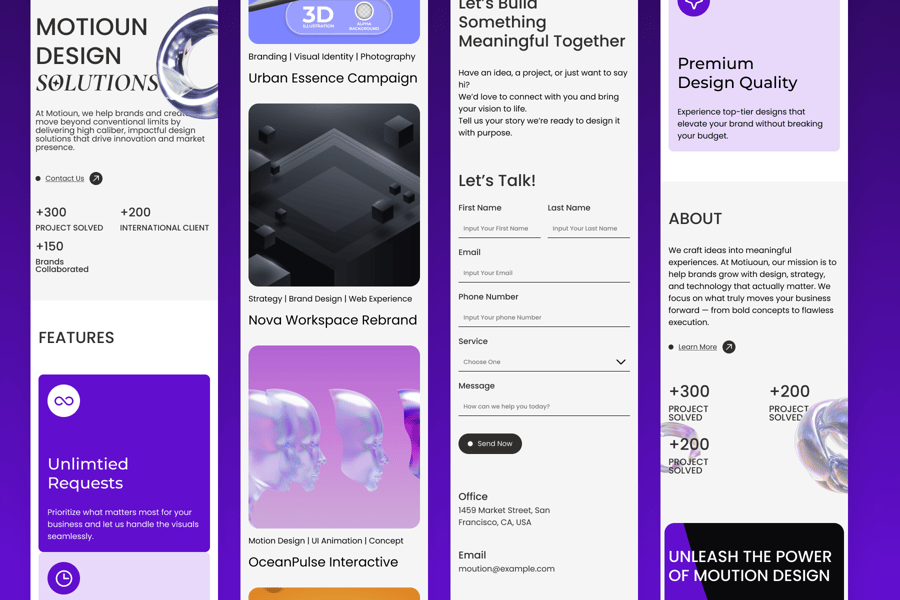 Motioun是一家现代创意机构,致力于将创意转化为引人入胜的视觉故事。我们拥有一支充满热情的设计师、策略师和创意人员团队,提供量身定制的品牌、设计和数字解决方案,以打动受众并提升品牌影响力。我们的使命是确保每个项目都超越简单的设计,成为一个充满创意、影响力且令人难忘的故事。