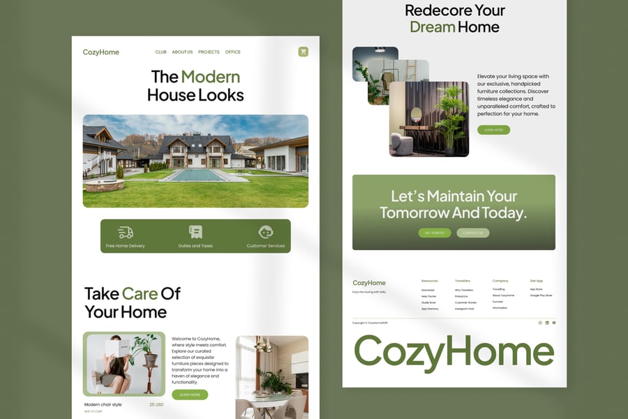 使用 Livora Minimal Clean Real Estate Figma 落地页模板,以简洁精致的方式展示您的房源。这款轻盈优雅的模板专为房地产经纪公司、建筑事务所和房地产开发商量身打造。其极简的设计、均衡的网格布局和开放式设计,营造出专业可靠的视觉体验,是推广高端住宅或商业房源的理想之选。