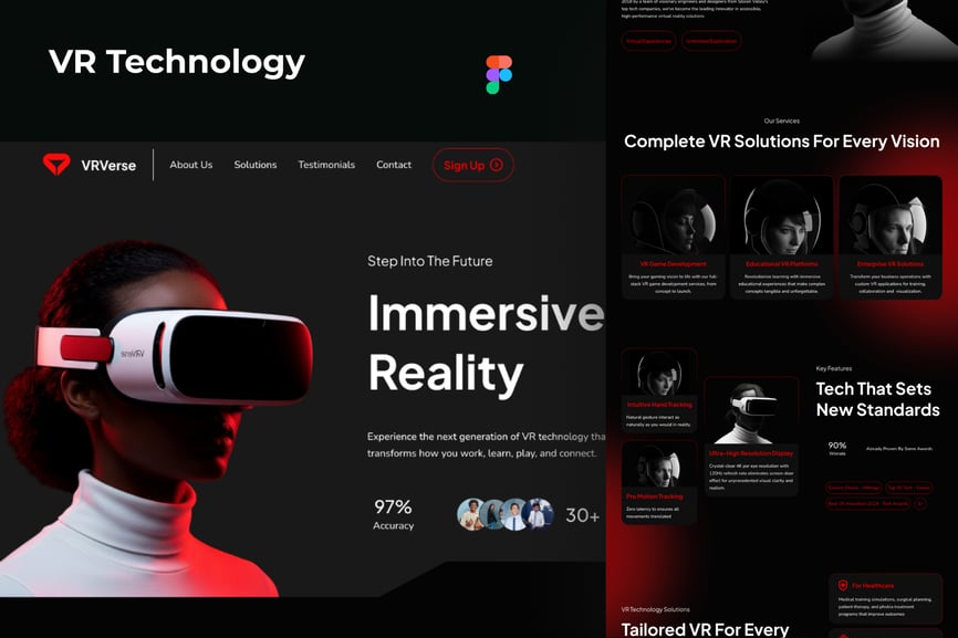 下载 VR 技术落地页模板,以展示您的下一代创新成果,吸引受众,并通过现代化的沉浸式设计提升您的数字形象。